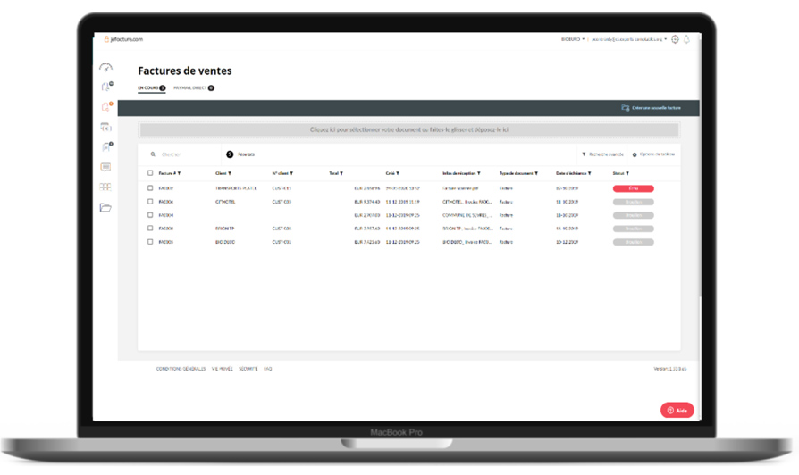 L’entreprise pourra confier une adresse mail à ses fournisseurs pour que les factures d’achat parviennent directement à jefacture.com. Elles pourront également être récupérées automatiquement sur le site de mise à disposition du fournisseur. Le chef d’entreprise pourra valider la prise en compte de chaque document.